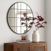 Brighten up your space with this Round Window Pane Metal Wall Mirror from Thresholdβ’. A mirror styled like a window has been popular in modern farmhouses and industrial homes alike for good reason. The steel frame features a matte black finish, and the flat metal crisscross overlay adds a clean-line element and gives this mirror a fresh and modern feel. A well-designed piece, this round window pane mirror opens up a room like a newly-added window, and it comes with mounting hardware for easy installation.