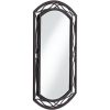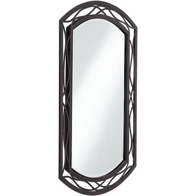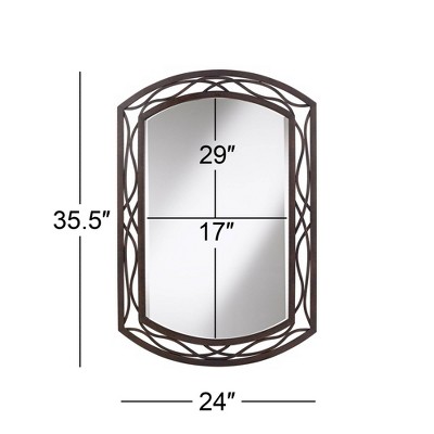 A gorgeous iron mirror design with traditional elegance and modern versatility. The frame is made of open, woven metal in a rich bronze finish. This shapely mirror has a transitional design is a wonderful accent for an empty wall or vanity area. Vertical installation only.