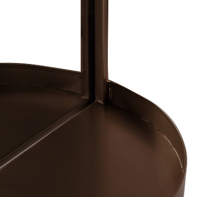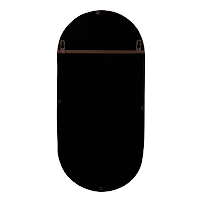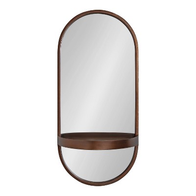 A great way to incorporate a mirror and upgrade your decor, the Kate and Laurel Estero Wall Mirror will bring a timeless elegance to any room. The shelf featured in the design makes a dramatic display for ornamental essentials such as a candle or photo frames. With its ample amount of surface area, you can also use the Estero mirror as a small vanity mirror with a shelf for make-up, creams, and lotions. This wall mirror is constructed of high-quality metal in a capsule-like shape, giving you a minimal, practical piece of decor with an elegant, modern twist. At 24 inches tall and 11 inches wide, the Estero Mirror is an accent with a space-saving, compact size that fits in any corner or slim wall. The bronze finish also offers a modern-yet-sophisticated aesthetic that has the capability of blending into any room with a little decorative nudge. Hang this accent mirror in only a matter of seconds with the two keyhole hangers securely attached to the back. Feature it in any modern living room, bedroom, entryway, dining room, bathroom, hallway, or entryway foyer.