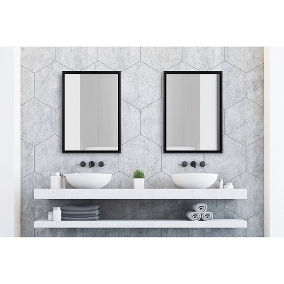 Add a sleek, modern accent piece in your home with this beautiful Evans Wall Mirror from Kate and Laurel. This mirror brings modern simplicity to your home, featuring a classic, rectangle shape and a smooth black finish on its frame. What makes our mirrors stand out is the unique, floating reflective surface within the frame. The overall dimensions are 18 inches wide and 24 inches tall, providing a contemporary statement in your home that doesn’t overpower your other decor pieces. In fact, we recommend displaying the Evans Modern Wall Mirror in multiples, creating a dynamic triad or dual wall display. Use this mirror as a contemporary accent piece in any room of your home. Thanks to its modern, yet simple design, its easy to feature in any living room, bedroom, bathroom, entryway, or kitchen. Its rectangular shape also allows it to be easily displayed as a bathroom vanity mirror over a sink. The Evans Modern Wall Mirror is ready to go right out of the box in a matter of seconds, with no assembly required and metal D-ring hangers attached to the back for easy and secure installation.