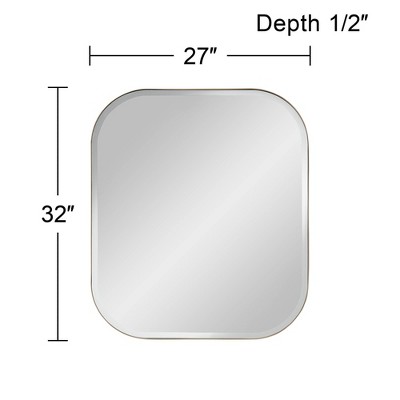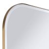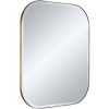 Rounded corners create a compellingly simple silhouette for this rectangular metal wall mirror. It features a slim stainless steel frame in brushed gold finish surrounding timeless beveled glass. Install vertically or horizontally over a console or in a hallway nook.