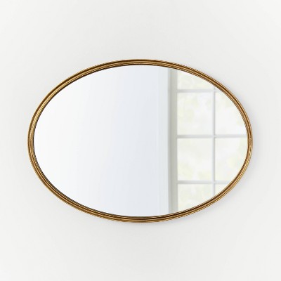 Enhance your indoor space with this Oval Shape Antique Mirror from Thresholdโข designed with Studio McGee. Set inside a sleek, oval frame with a clean, silhouette for an elegant touch, this antique mirror features a smooth brass finish for the perfect pop of color and shine. Plus, the wall-mountable design makes a installation a breeze. Great for your living room, entryway or hallway, this oval brass mirror with its antique design brings timeless elegance to any room.