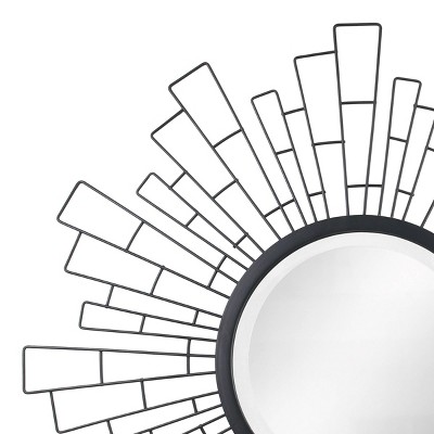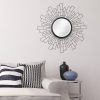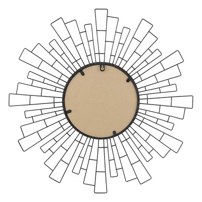 Instantly add an interesting focal point to any room in your home with Stonebriar’s decorative black metal 24″ geometric sunburst hanging wall mirror with attached hanging brackets. This unique mirror features a stylish metal wire geometric starburst design accented with a smooth black painted metal finish giving a little extra pop to your home decor. The end result is a striking and eye-catching piece perfect for your living room, dining room, bedroom, bathroom, or any room in your home. Stonebriar’s decorative mirror measures 23.7 inches in diameter with the sunburst frame and the glass mirror measures 8.75 inches in diameter alone. It is the perfect size to use as an accent mirror on any wall in your home. Mirror comes with attached keyhole hanging bracket for easy installation right out of the box! Buy your Stonebriar decorative black metal 24″ geometric sunburst hanging wall mirror with attached hanging brackets today and create an instant classic in your home decor.