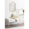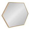 Decorating with mirrors is lots of fun especially when they come in a bold and versatile shape like the Kate and Laurel Rhodes hexagon wall mirror. No matter what interior decorating style you want to go with, a unique shaped mirror can bring an added dimension. Not only can it be used as a much-needed accessory, but with a bit of imagination, it can become a real focal point of your home. The polished elegance of the frame enhances the glass it surrounds and creates a modern take on a classic design. Used on its own or in combination with your other home decor items, this mirror is sure to fit in with your best look, creating an eye-catching exhibit of pure inspiration. The shape is a great way to break up the straight lines of a gallery display wall or just the right size for smaller wall spaces or even hang it directly above a sink making it perfect for a vanity. The outside dimensions of this hexagon mirror are 31 x 22 inches. The D-ring mounting hardware comes installed on the back, which will keep the mirror flat and secure wherever you hang it.