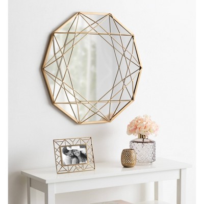 - The sophisticated ten-sided metal design of this accent mirror will look fantastic hanging above your bedroom headboard or living room sofa