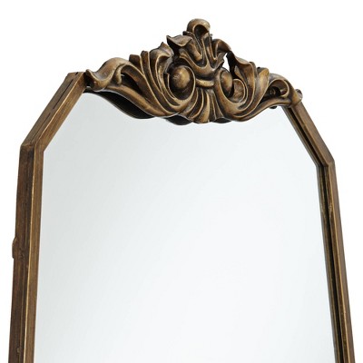 Pure artistry plays with angles and shapes to produce an impressive addition to traditional or transitional decor. By Noble Park, this exceptional mirror offers an enticing geometric shape and a lush gold finish metal frame over non-beveled glass. An ornate crown top delivers lush sophistication and style.