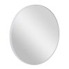 - This contemporary round wall mirror is furnished with a white wooden frame and a reflective clear glass