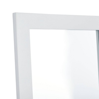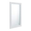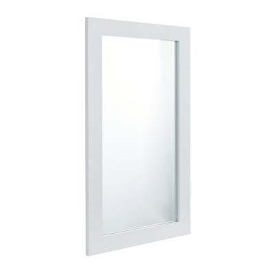 - This contemporary rectangular wall mirror is furnished with a white wooden frame and a reflective clear glass