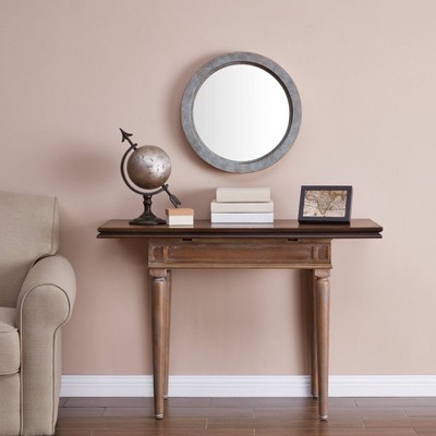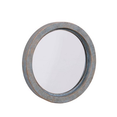 Create a stunning design statement with this 16″ Round Modern Industrial Floating Wall Mirror Copper from Danya B. Elegantly minimalist and gorgeously industrial in style, this ultra-modern round mirror offers visual appeal with its lack of ornamentation and refined aesthetics. Crafted with a metal frame in green and copper patina finish, the modest design makes it effortless to integrate into a variety of design motifs. Hanging keyhole is installed so you can immediately prop it just anywhere where you need to create a visual statement.