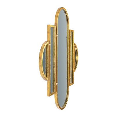 This elegant mirror is the perfect wall accent for a Hollywood Regency style space. The unique design and bright gold finish gives off an Art Deco feel and can brighten up any room.