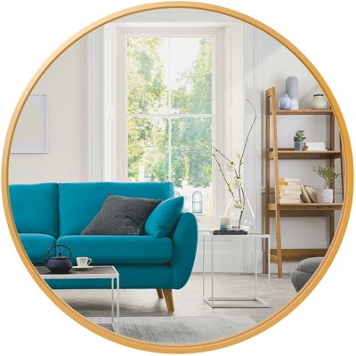 Enhance any room in your living space with a 36-inch round mirror, a simple yet attractive design that makes this mirror a stylish and useful addition to your interior decor. Find your best look with this mirror hung in your bathroom or make it an elegant addition to your living room. No matter the use, your home will thank you. Your sturdy, 1.5-inch-thick mirror is made with durable metal and glass for a heavy-duty design that adds lasting elegance to any setting. Designed with safety in mind; anti-blast film sticks to the glass to help prevent shattered pieces from leaving the frame, while a thick metal frame adds to the durability and safety-first design for years of enjoyment. Comes ready to hang right out of the box, mount your lightweight mirror with 4 brackets for a sturdy hold.