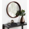 Mirrors are a great way to open up space and bring lightness to any room, but beyond that, they are a fantastic way to add style and finesse as well. Not only can they be used as a much-needed accessory and fun to decorate with, but with a bit of imagination, they can become a real focal point of your home. With the round shape of the Kate and Laurel – Hutton Mirror, function never looked so fashionable. The gorgeous wood frame has a smooth, sturdy appearance creating a modern take on an art deco design. This smaller version of the Hutton mirror is sure to fit in with your best look, creating an eye-catching display of pure inspiration. The shape will be a great way to break up the straight lines of a gallery display or just the right size for a smaller wall space. Hang directly above a sink, making it just perfect as a simple vanity. The outside diameter of this round mirror is 22 inches x 2.0 inches deep. Two hangers come installed on the back and are elbow D-Ring type with a wire in between them, which will keep the mirror flat and secure.