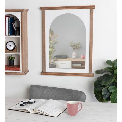 Decorate your home with a coastal aesthetic that makes a bold impression with the Brenna wall mirror from Kate and Laurel. Inspired by vintage farmhouse decor, the Brenna wall mirror features an arched opening with crown moulding at the top and bottom of the frame. This crown moulding delivers a lovely sophistication and a beautiful dimension to any wall of your home. The wooden frame of the Brenna wall mirror is also distressed by hand to give it that antique look, in addition to its lovely two-tone rustic brown and white finish. This beautiful mirror looks fantastic mounted on the wall in your living room, bedroom, entryway, or dining room. The mirror’s overall dimensions are 22 inches wide by 28 inches tall, so it also looks fantastic as a powder room or master bathroom wall mirror above your sink. Adding a mirror to your home not only enhances your wall decor but also spreads more light throughout your space. Hang the Brenna wall mirror in a matter of seconds with the D-ring hangers securely attached to the back of the frame.