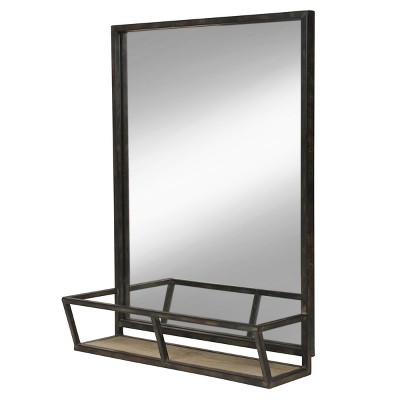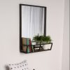 - Decorative framed wall mirror with metal shelf for home organization
