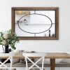 Expand your space with the Silverthorne wall mirror, a robust wall mirror that is elevated by its traditional, rustic design. The Silverthorne mirror features a wooden frame, carved with a beveled, antique-like look. What sets this mirror apart from competitors is its unique, geometric overlay, constructed with a heavy-duty, natural iron material. The oval shape within this rectangle mirror is excellent for use as a bathroom mirror above your vanity or a bold, functional accent piece in your living room, bedroom, entryway, kitchen, or office. Adding a mirror to your wall decor expands the space it hangs in, creating a more open concept from the light it reflects within the room. The overall display dimensions of this traditional wall mirror are 24 inches wide by 34.75 inches tall, creating a robust, eye-catching focal point for your living space. This sophisticated, traditional wall mirror hangs in a matter of seconds with the convenient metal D-ring hangers securely attached to the back of the wooden frame.