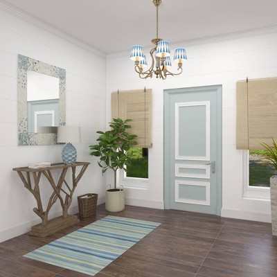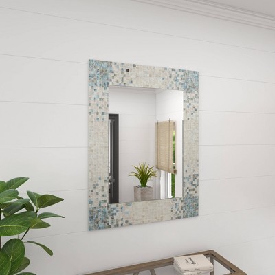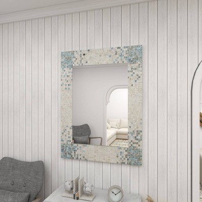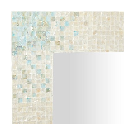 Add some style to your entryway, lobby, living room, bedroom, or bathroom with this striking mussel shell inlaid wall mirror. This accent piece features a rectangular tiled frame made of pearl mussels that will surely beautify your space. It also features gray and white finishes which are relaxing and easy on the eyes. With its impressive look, this stunning mirror suits any home with a coastal interior design. Apart from decorating your home, the purpose of this mirror is to bounce back outdoor light to a small room to make it look bigger. Pair this decorative wall mirror with house plants or other wall decor accent pieces to blend everything together perfectly. Item features metal loop for easy and secure hang. Suitable for indoor use only. This item comes shipped in one carton.