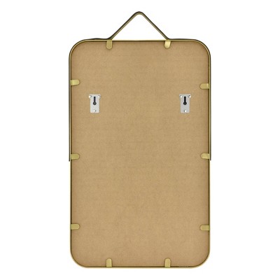 The Rectangular Strap Wall Mirror from Thresholdโข is the perfect addition to a variety of spaces in your home. This wall-mount mirror has a timeless rectangular silhouette with rounded edges for a softer effect, and is enclosed in a sleek metal frame in a gold brass tone for a touch of glam shine. You’ll love the way it looks over the vanity in your bathroom, or in the entryway above your console while letting you adjust your hair and clothing before leaving home to start the day.