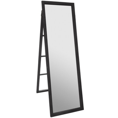 Take a quick look before you step out the door with the 22″ x 70″ Classic Black Full Length Wood Ladder Standing Mirror with Easel. This full size mirror is a modern update on the classic leaning mirror with clean modern lines that offers simple, yet contemporary appeal. It’s lightweight design make is easy to move and adjust with an adjustable easel stand that allows you to tilt the mirror as desired. Rear stand measures 38 inches tall and finished in a smooth black which compliments this full length mirror’s white frame. Ladder detail offers additional storage to hang your wardrobe essentials right where you need them. It measures 70.1 inches tall x 22.4 inches wide and the modern narrow frame measures 1.75 inches wide.