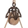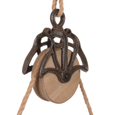 - Jute rope offers style and functionality with metal and wood pully attachment accents