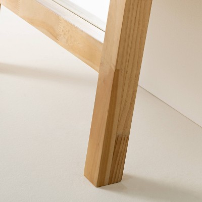 Make any room look more spacious with this 71″ Standing Wood Framed Mirror Natural from Hearth & Handβ’ with Magnolia. This rectangular standing mirror brings decorative style and function to your indoor space. It features a deep wood frame for dimensional style. The recessed glass center creates the illusion of extra space, while the natural color coordinates easily with existing decor. This full-length mirror comes with anti-tip anchoring hardware for easy hanging.
