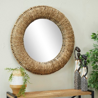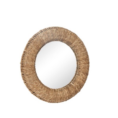 - This bohemian wall mirror features a round reflective glass mirror supported by brown reed plant frame for a natural look