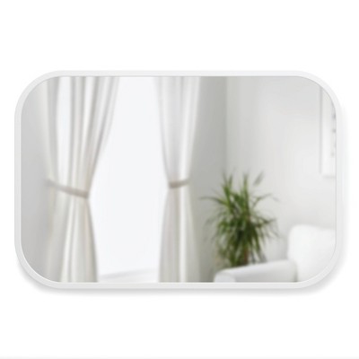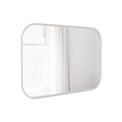 Hub Mirror Rectangular brings a fun and new shape to the classic Hub Mirror Family. Measuring 36 x 24 inches, Hub will not only brighten your space but adds visual depth to make it appear larger. With its modern black rubber rim that doubles as a protective bumper, this decorative mirror makes a perfect statement piece in any room.