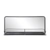 Hang some sleek and elegant appeal on your wall with this metal wall mirror . Durably made with a sturdy metal frame, this wall-mounted mirror has a handy shelf for displaying candles, photographs, decorative accents, holiday decor and more. More than a reflection, this Wall Mirror brings light and dimension to any room while adding a bright touch to the decor. This wall mirror has an industrial look that evokes 1940s America with curved gray pipe frames extending outward at the bottom to form a convenient shelf. At approximately 19-inches long, this mirror is sized to fit a single vanity in a bathroom . In an office or living room, try a bud vase and other display items to soften the factory feel.