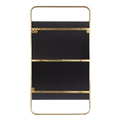 Capture a chic, modern design that elevates your room with the Nobles wall mirror. Inspired by contemporary, industrial aesthetics, this mirror features a metal frame with a rounded rectangle shape, making it look and feel sophisticated. The frame also features a glamorous gold finish, giving it a refined elegance that is fantastic for multiple decor aesthetics. The metal frame also extends beyond the reflective glass, giving it a floating quality that makes a bold impression on any wall of your home. This edition of the Nobles mirror is 20 inches wide by 36 inches tall, creating a striking focal point that commands attention. Adding a mirror to your home like the Nobles creates a more dimensional space, enhancing the vibrancy of the room while creating an open environment. Use this rounded rectangle wall mirror as a functional bathroom mirror above your vanity or use it to make a fabulous modern statement in your living room, bedroom, or entryway. Regardless of how you display the Nobles, it’s simple to hang in horizontal and vertical orientations with resilient keyhole hangers welded to the metal frame.