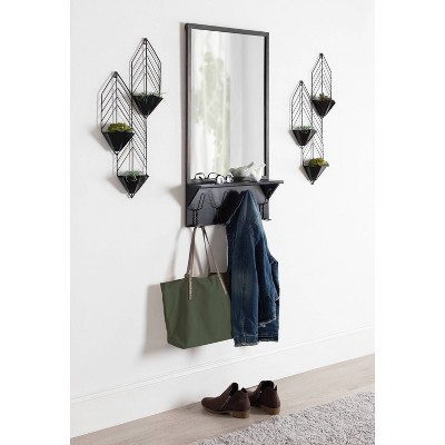 - A handsomely designed accent, the Coburn Wall Mirror is a beautiful decorative piece. The shelf detail and the 4 hooks also make it incredibly functional for your kitchen or entryway organization