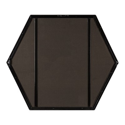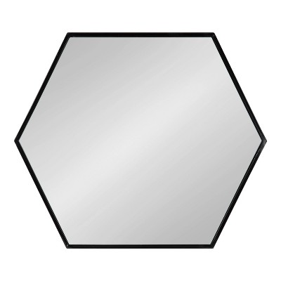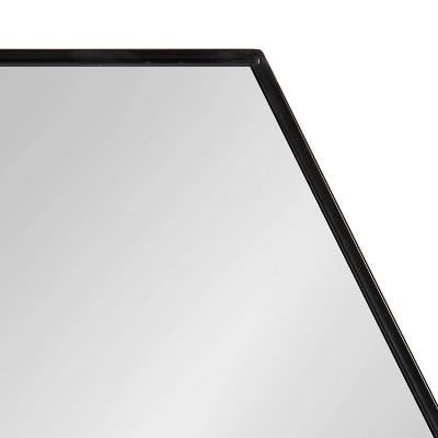 An avant-garde and geometric mirror is the type of home accessory that showcases your sophisticated and modern decor aesthetic. The McNeer wall mirror displays your taste in minimal yet eye-catching accent pieces while adding vibrancy and light to your space. The hexagon shape, sleek black trim, and ample surface space of the mirror make the Kate and Laurel McNeer mirror an accessory and a showpiece. Use it in a bathroom for a decorative effect over a vanity or as an impressive piece of wall art. Adding a mirror enhances your space by spreading more light, making it appear more dimensional, vibrant, and open-concept. Hang it in an entrance hall, over a bench or couch, in the dining room, or any wall that needs more character. A well-placed mirror creates harmony and pulls a place together as it reflects the space. The dimensions are 25.75 inches tall by 22 inches wide. Hang the McNeer wall mirror in a matter of seconds with the metal sawtooth hangers attached to the back of the frame.