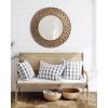 This beautiful Nubury wall mirror has the capability to set the tone of your home with its stylish and beautiful design. This farmhouse mirror features a lovely woven look crafted with authentic bamboo. The natural appearance of the elegant bamboo gives your home a vintage and worldly look that everyone will be impressed by. The Nubury’s frame also has a curved profile that allows it to burst off the wall and create a more dimensional appearance. The overall dimensions of this mirror are 28 inches in diameter, with the slight curve in its profile coming 2.5 inches off the wall. This large size allows the Nubury the ability to capture the imagination and attention in any room. This fantastic mirror is superb for use above a vanity or as a decorative focal point in your entryway, bedroom, living room, or dining room. Hanging a mirror in your space offers your home more vibrancy and dimension, allowing smaller corners to feel more open and inviting. This round mirror hangs easily with the simple sawtooth hangers attached to the back of the bamboo frame.