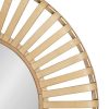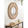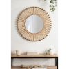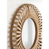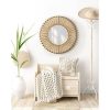 Create a bohemian aesthetic in your home with this fantastic and oversized Oren mirror. This beautiful mirror is the epitome of boho design, featuring a curved, dimensional look on the frame that pops off the wall. The beautifully curved frame is made from premium, high-quality bamboo with a natural wood finish to show off its rich, authentic look. The round shape emphasizes its unique look with a dash of modernity to showcase a geometric and trendy style on any wall. The Oren mirror has a 28-inch diameter and has a 2-inch profile, giving it a fabulous dimensionality that pops off the wall. The actual glass mirror is 15 inches in diameter, providing an accent piece that is lovely for adding vibrancy and openness to any room of your home. Hang this lovely piece of wall decor in your bedroom, entryway, dining room, living room, or even bathroom with its stellar and unique boho design. Hang the beautiful and awe-striking Oren wall mirror in a matter of minutes with the convenient sawtooth hangers that are attached to the back of the frame.