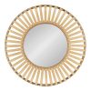 Create a bohemian aesthetic in your home with this fantastic and oversized Oren mirror. This beautiful mirror is the epitome of boho design, featuring a curved, dimensional look on the frame that pops off the wall. The beautifully curved frame is made from premium, high-quality bamboo with a natural wood finish to show off its rich, authentic look. The round shape emphasizes its unique look with a dash of modernity to showcase a geometric and trendy style on any wall. The Oren mirror has a 28-inch diameter and has a 2-inch profile, giving it a fabulous dimensionality that pops off the wall. The actual glass mirror is 15 inches in diameter, providing an accent piece that is lovely for adding vibrancy and openness to any room of your home. Hang this lovely piece of wall decor in your bedroom, entryway, dining room, living room, or even bathroom with its stellar and unique boho design. Hang the beautiful and awe-striking Oren wall mirror in a matter of minutes with the convenient sawtooth hangers that are attached to the back of the frame.
