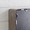 - A distressed wood box surrounds the mirror to create a shadow box effect