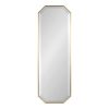 Indulge in the glamorous, minimal aesthetic of the Rhodes wall mirror, a practical wall accent for any room. Inspired by modern, geometric forms, the Rhodes mirror has minimal lines and a lovely octagon shape. The Rhodes surface is constructed with a resilient plastic frame and mirrored glass while offering a beveled edge to spread more light throughout the area. Adding a mirror to your wall expands your space by reflecting light, creating a more dimensional, open concept room. Hang this practical, geometric accent in any modern or glamorous living room, bedroom, entryway, bathroom, closet, or dining room. The overall dimensions of this mirror are 16.75 inches wide by 1.5 inches deep by 48.75 inches tall, showcasing a robust, full-length mirror for checking your appearance, tying your tie, or doing your makeup. Showcase the Rhodes on its own for a bold focal point or in multiples to create a grand wall display. The metal D-ring hangers attached to the back of the frame allow you to hang it both vertically or horizontally, depending on your unique decorative aesthetic.