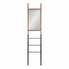 The beautiful, shabby-chic Trygg Leaning Wall Mirror brings an authentic, rustic edge to your traditional home decor. This leaner wall mirror brightens any room it’s in, featuring a mixture of high-quality metal and wood material for a long-lasting decorative piece. It features a ladder-inspired design with a two-tone finish, with a black iron bottom and a natural wood top. The mirror itself is 14.5 inches wide by 23.75 inches high, with the overall decorative ladder standing at 72.” inches tall by 17 inches wide. The decorative Trygg Leaning Wall Mirror also features three ladder rungs to hang blanket, towels, or even small clothing items. This multi-functional wall mirror looks great in any rustic farmhouse-inspired living room, bathroom, bedroom, or dining room. You won’t have to worry about your new favorite decor piece falling to the ground, either; the Trygg Wall Mirror features secure wall-anchoring hardware to prevent any potential mishaps. This mirror is easily assembled and ready to display in a matter of minutes.