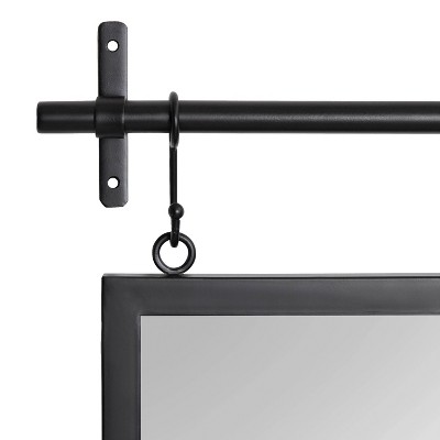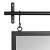 - RUSTIC DECOR ITEM: This mirror has a barn door-inspired hanging frame with a sleek black finish