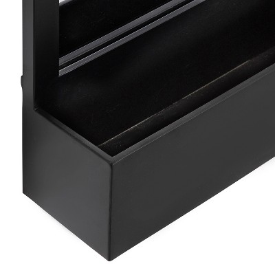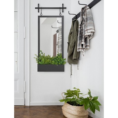 Add light, dimension, and function to your rustic wall decor with the Gammons Wall Mirror. This mirror offers a shabby-chic accent to your home while also providing plenty of practicality. The mirror itself stands at 12.75 inches wide by 26.25 inches high, providing you plenty of surface area to reflect light and open up your smaller spaces. This mirror features a black finish on a metal frame, with the mirror hanging from an iron rod with sliding hooks for a barn door-inspired look. This wall mirror also features a storage bin on the bottom for small items such as keys, small trinkets, and other just-in-case items. Its narrow profile makes it the perfect decor item for smaller, more narrow spaces. Hang it in only a matter of seconds with secure hanging hardware and pre-drilled holes in the top of the hanger. As a rustic farmhouse decor piece, the Gammons Wall Mirror looks excellent in any shabby-chic living room, bedroom, hallway, entryway, or bathroom. There is also zero assembly required, so your mirror will be ready in a matter of minutes.