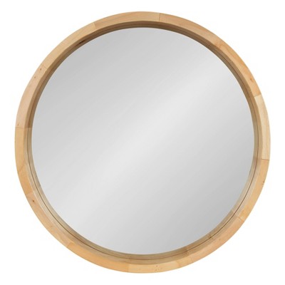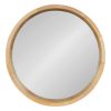 With the round shape, light natural finish and Scandinavian aesthetic of the Kate and Laurel – Hutton Mirror, function never looked so fashionable. This mirror is a great way to open up space and bring lightness to any room as well as a fantastic way to add style and finesse. This smaller version of the Hutton mirror is sure to fit in with your best look, creating an eye-catching display of pure inspiration. The shape will be a great way to break up the straight lines of a gallery display or just the right size for a smaller wall space. Hang directly above a sink, making it just perfect as a simple vanity. The outside diameter of this round mirror is 22 inches x 2.0 inches deep. Two hangers come installed on the back and are elbow D-Ring type with a wire in between them, which will keep the mirror flat and secure.