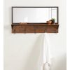 Blend modern design and farmhouse aesthetics with the practical Coburn mirror. The Coburn utilizes a clean, simple frame constructed from wooden material, embracing a minimalist look around the glass’s wide surface area. Below the mirror is where the farmhouse aesthetics come into play, with a refined wood shelf and five metal hooks. Utilize the Coburn mirror’s shelf to display a tiny succulent, prop up photos, or store household necessities. The five hooks are fantastic for dog leashes, small clutch bags, or car and house keys. This decorative wall accent’s overall dimensions are 36 inches wide by 5.25 inches deep by 21.75 inches tall, making it an excellent size for various rustic-inspired rooms in your home. Utilize the two keyhole hangers attached to the MDF frame’s back for simple and straight forward installation.