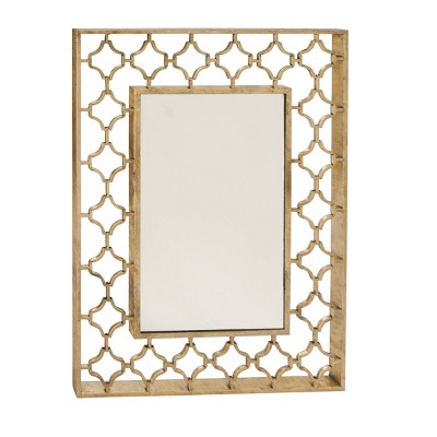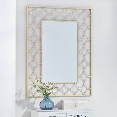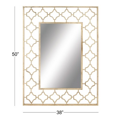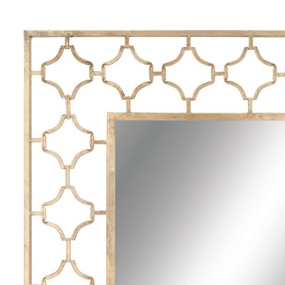 Add some elegance to your entryway, lobby, living room, or bedroom with this striking metallic accent wall mirror. This accent piece features a rectangular open-designed frame with an inner quatrefoil pattern in gold finish. With its impressive look, this stunning mirror suits any home with a glam interior. Apart from decorating your home, the purpose of this mirror is to bounce back outdoor light to a small room to make it look bigger. Pair this decorative wall mirror with house plants or other wall decor accent pieces to blend everything together perfectly. Suitable for indoor use only. This item comes shipped in one carton.