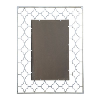 - This decorative wall mirror has a rectangular shape and quatrefoil pattern