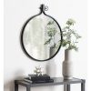 - The painted metal frame surrounds the large round mirror which is 23.5 inches in diameter. It would be perfect as a vanity mirror in a bathroom or bedroom