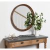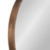 Add a piece of rustic or boho wall decor to your home with this incredible round wall mirror by Kate and Laurel. Designed to blend both rustic and modern decor aesthetics, this mirror decor features a frame with solid wood construction and a chic, contemporary round shape. The frame also features a scooped profile for an eye-catching, unique form. The Colfax Mirror has a 30″ diameter, capable of being displayed on its own or in multiples for a sophisticated, symmetrical wall display. It also features a natural finish for a rustic, yet transitional look, capable of blending into any boho or farmhouse-inspired living room, bedroom, entryway, or dining room. If you’re looking for any bathroom mirrors for wall decor, it also makes an elegant accent to hang in a bathroom above a powder room sink or table. Adding a mirror to your living space not only provides a decorative wall display but reflects and spreads light throughout your home to expand and add dimension to any room. This mirror is easy to hang with metal D-ring hangers, providing your home with a sophisticated boho mirror in a matter of minutes.