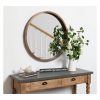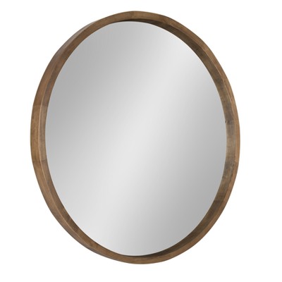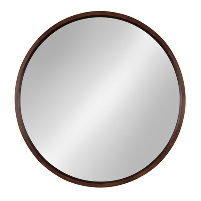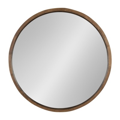 Dress your powder room or entryway in understated style with this Round Decorative Wall Mirror from Kate & Laurel All Things Decor. Designed to blend in with most types of home decor, this round wall mirror features a wood frame for durability, while two hangers in the back keep it flat and secure against the wall. Add modern style and dimension to your space with this decorative wall mirror.