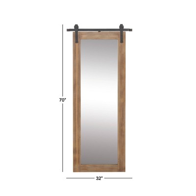 - This floor mirror decor is made from a flat glass surface encased in a wood frame and mounted to metal hardware
