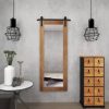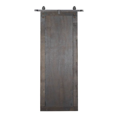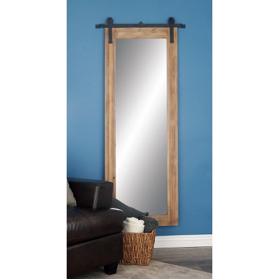 - This hanging floor mirror is composed of a wood frame, metal accent, and glass center