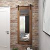 Add some style to your entryway, lobby, living room, or bedroom with this striking triangular brown floor mirror. This accent piece features a brown wooden frame with center mirror and black metal top bracket. With its impressive look, this stunning mirror suits any home with industrial or rustic interior design. Apart from decorating your home, the purpose of this mirror is to bounce back outdoor light to a small room to make it look bigger. Pair this decorative wall mirror with house plants or other wall decor accent pieces to blend everything together perfectly. Ready to hang by hardware in back. Suitable for indoor use only. This item comes shipped in one carton.