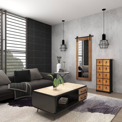 - This wood floor mirror has a black and natural brown finish