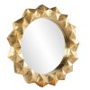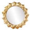 Give your walls a metallic pop of color with the Aiden Lane Skamxe Round Decorative Mirror. A geometric frame creates a modern feel in your space, while handcrafted brass cladding adds unique texture. Place this contemporary wall mirror in your living room as functional dΓ©cor, or hang above an entryway console to welcome you home. Modernize your dining room or open concept space when you bring home this decorative hanging mirror.